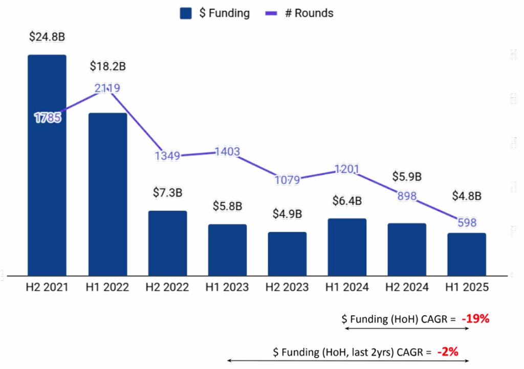 India’s startup ecosystem and the country ranked #3 globally for technology startup funding in H1 2025, with over $4.8 billion raised. Even though the funding flow was a bit slower compared to the last year (in 2024, Indian startups raised $6.4 billion in the same period), they’ve managed to overtake Germany and Israel. While the US and the UK were still way ahead, it was a pretty impressive showing.
